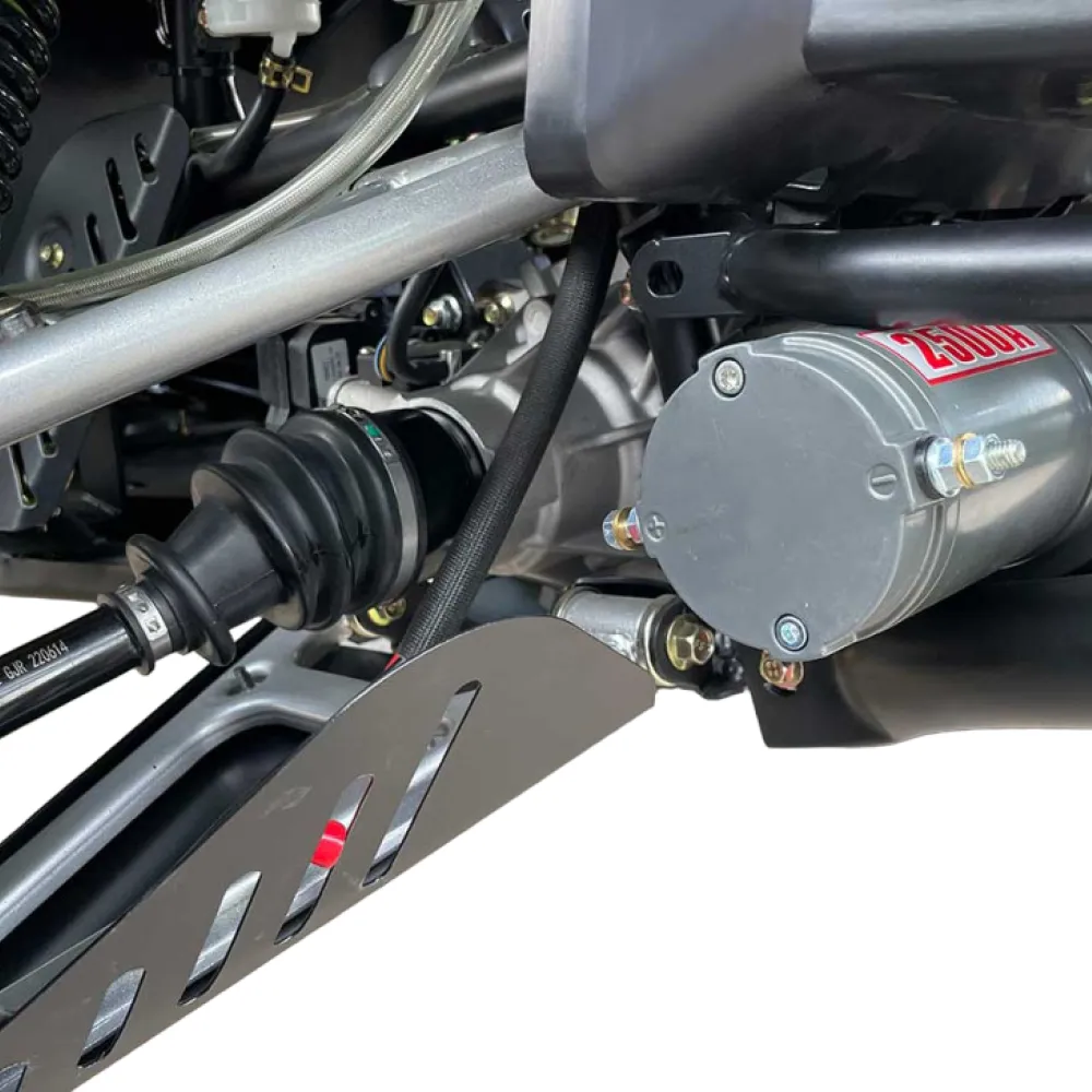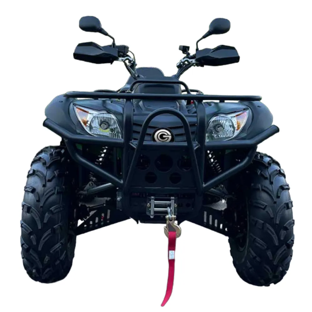Черный цвет квадроцикла придаёт ему защитный вид и позволяет скрываться на ночных маршрутах. Квадроцикл также имеет систему блокировки, которая обеспечивает безопасность и защиту ваших личных вещей.