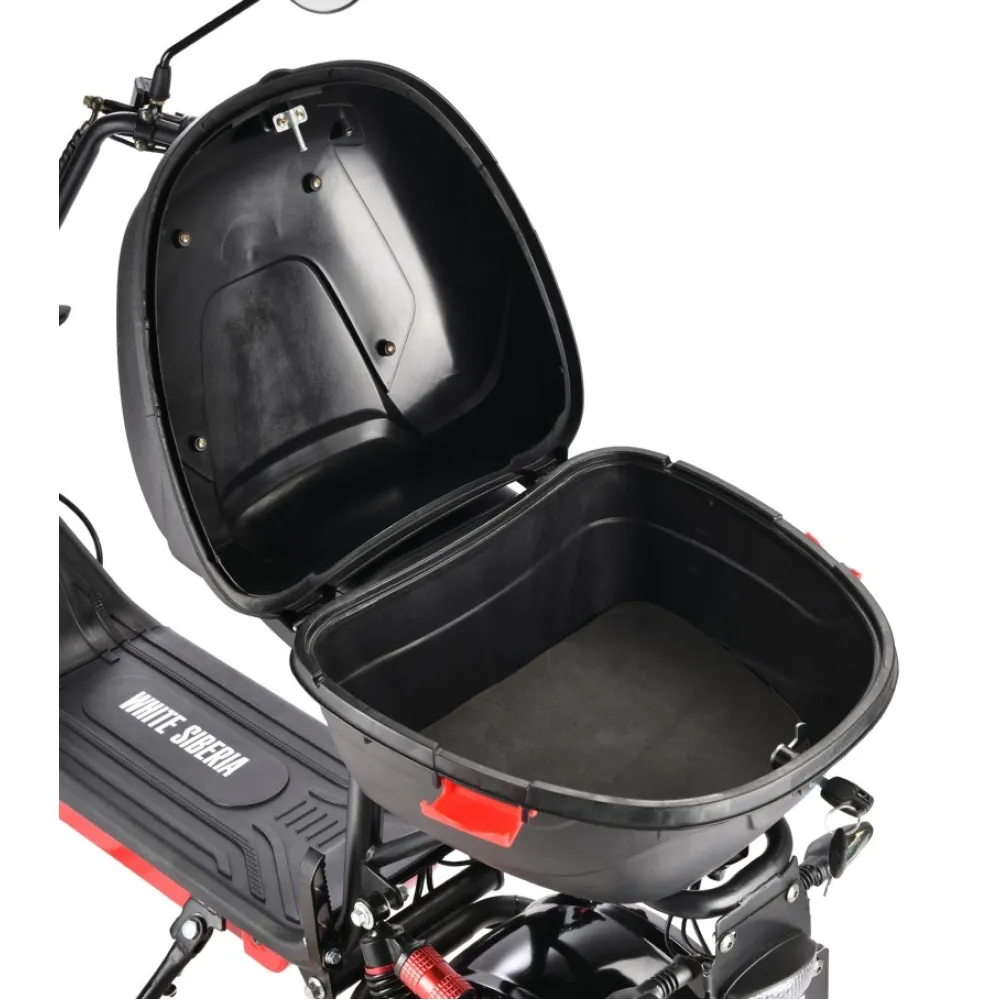 Купите у нас черный электроскутер WHITE SIBERIA MINI R 1200w 2.0 (2022), и при 100% предоплате мы бесплатно доставим его по всей России, подарив вам бесплатную годовую гарантию. Также у нас есть пункты самовывоза.