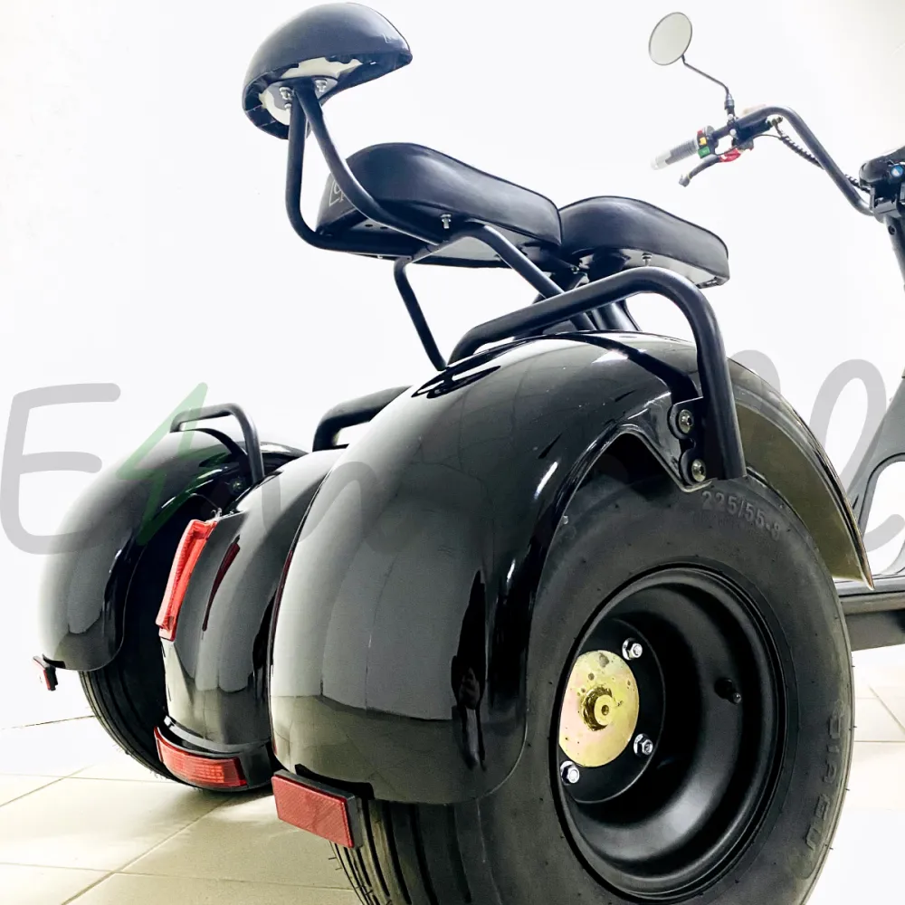 GT-X7 PRO трехколесный – байк 2021 года выпуска. Продвинутый двухместный вариант современного транспортного средства с мотором мощностью 2000 Вт. Оснащен дополнительным местом для пассажира, надежной гидравлической тормозной системой, противоугонной сигнализацией и другим функционалом. Трехколесный электробайк выглядит современно, брутально, выделяется на фоне другого транспорта.
