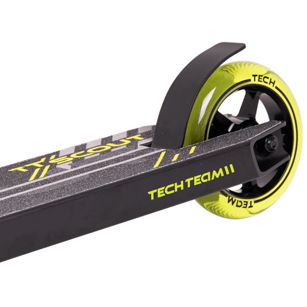 На этапе изготовления компания tech учла ошибки предыдущей линейки. Самокаты tech для начинающих райдеров изготовлены из высокопрочного надежного материала. Парковый самокат имеет алюминиевую деку габаритами 49х12 см с футспейсом 34 см. Оснащенность team scout конкейвом позволяет осваивать трюковые элементы, контролировать действия ездока. Трюковый самокат tech team имеет Т-образную форму руля. Ширина руля составляет 54см. Высоты руля от зажима (61,5 см) достаточно для ездоков начального уровня. Базовая модель techteam scout оснащена накатистыми полиуретановыми колесами с металлическим сердечником, промышленными подшипниками Abec 9. Каждый из трюковых элементов гарантирует максимальный разгон, важный для каждого трюкача.